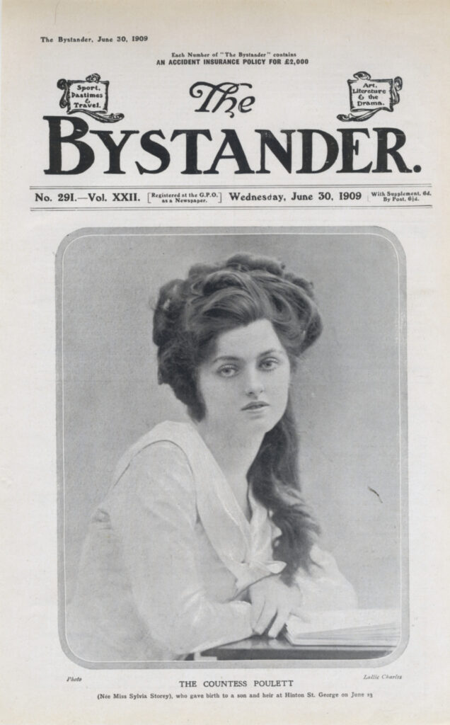 The image at the top of the page comes from an edition of The Bystander dated June 30th 1909 by which time Sylvia had become the Countess Poulett. She married in 1908 and she and her husband travelled around the world. William Poulett, 7th Earl Poulett died in 1918 during the flu epidemic.