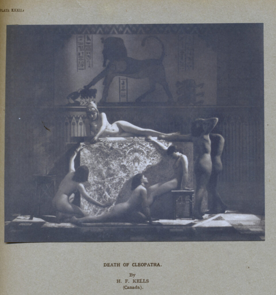 “Death of Cleopatra” harks back to Victorian paintings of classical themes, a sort of black and white homage to the colourful paintings of Alma-Tadema.